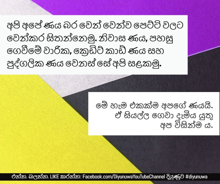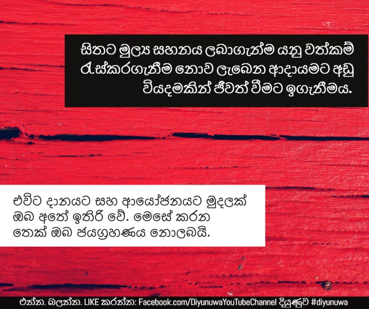 - පුද්ගලික මුදල් පාලනය තමන්ගේ දියුණුවට ඇති ප්රධාන බාධකයක් බව තේරුම් ගත් සියලු දෙනාට