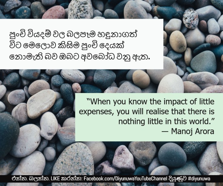- පුද්ගලික මුදල් පාලනය තමන්ගේ දියුණුවට ඇති ප්රධාන බාධකයක් බව තේරුම් ගත් සියලු දෙනාට