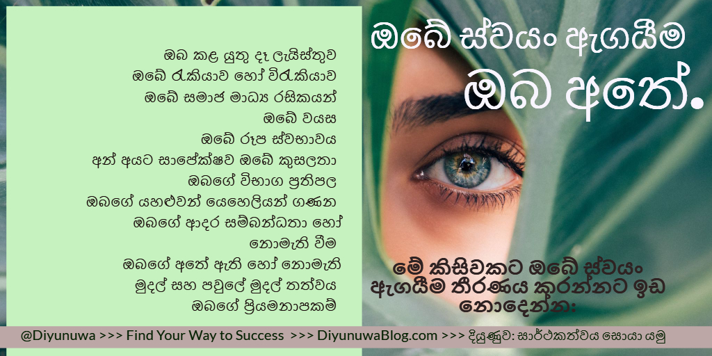 මේ කිසිවකට ඔබේ ස්වයං ඇගයීම තීරණය කරන්නට ඉඩ නොදෙන්න: