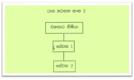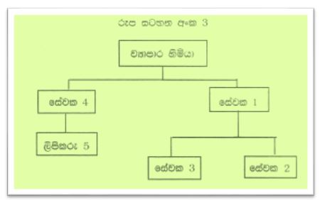 රූප සටහන් අංක 3 දැක්වන ආකාරයට සේවකයින්ගේ වැඩ කටයුතු සංවිධානය කිරීමට ව්යාපාර හිමියා ගත් තිරණය මෙසේය. තුන්වන සේවකයා දෙවන සේවකයා මෙන්ම පළමුවන සේවකයාගේ යටතට පත් කිරිමය. හතරවන සේවකයා පළමුවන සේවකයා මෙන් වනාපාර හිමියා යටතට පත් කර ඇත.