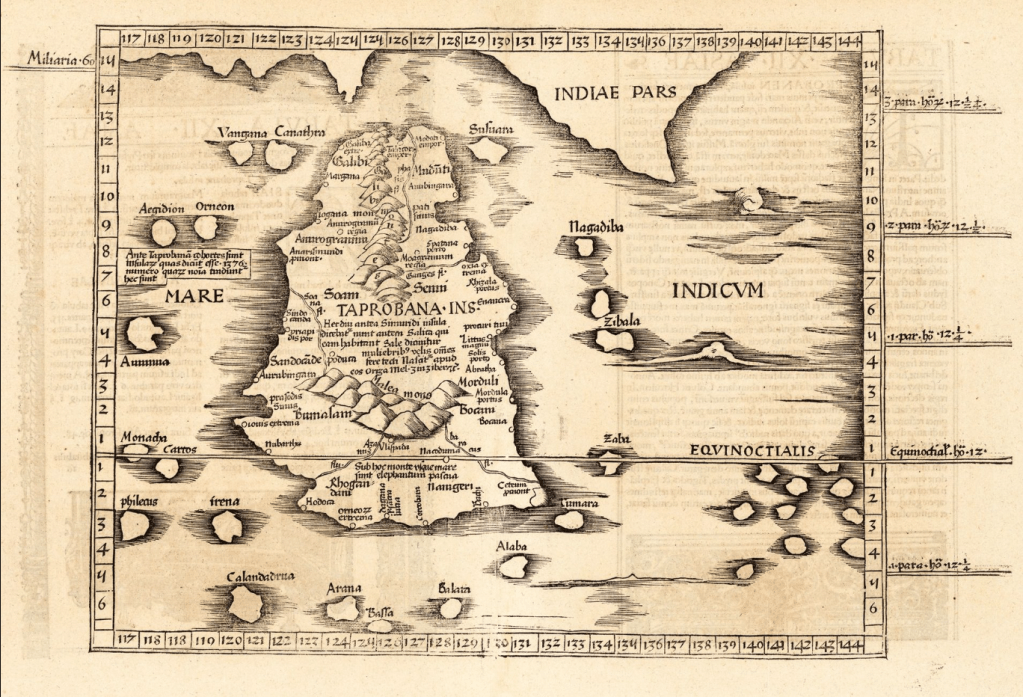 Ptolemy referred to Sri Lanka as Taprobana in his 1535 map. Taprobana was known to the ancient world, even before the time of Alexander the Great.