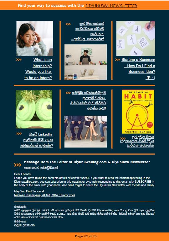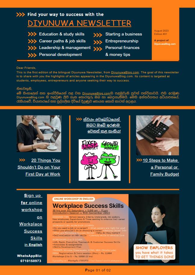 lick the link to read the Diyunuwa Sinhala/English Newsletter First Edition (August 2023).