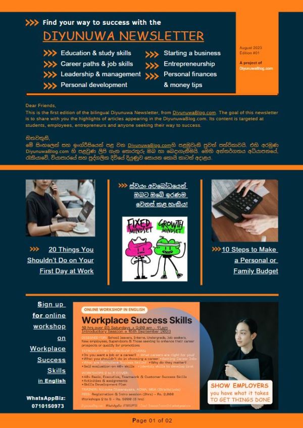 Diyunuwa Newsletter periodically highlights the Sinhala and English articles posted in the DiyunuwaBlog.com Edited by Nilooka Dissanayake